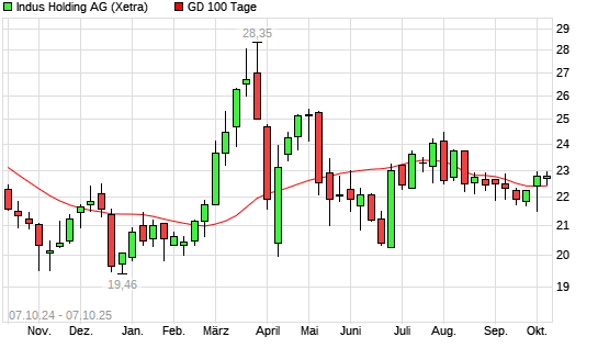 Mit dem Anstieg auf 22,60 EUR hat die Indus Holding-Aktie am 06.10.2025 die 100-Tage-Linie nach oben gekreuzt.