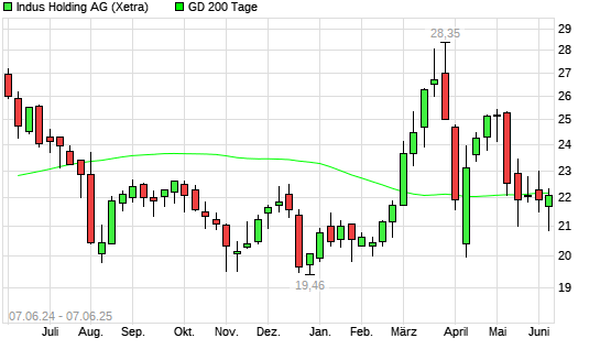 Mit dem Anstieg auf 22,35 EUR hat die Indus Holding-Aktie am 06.06.2025 die 200-Tage-Linie nach oben gekreuzt.