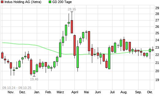 Mit dem Rücksetzer auf 22,65 EUR hat die Indus Holding-Aktie am 08.10.2025 die 200-Tage-Linie nach unten gekreuzt.