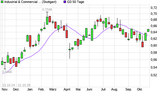 Mit dem Anstieg auf 0,64 EUR hat die Industrial & Commercial Bank of China-Aktie am 20.10.2025 die 50-Tage-Linie nach oben gekreuzt.