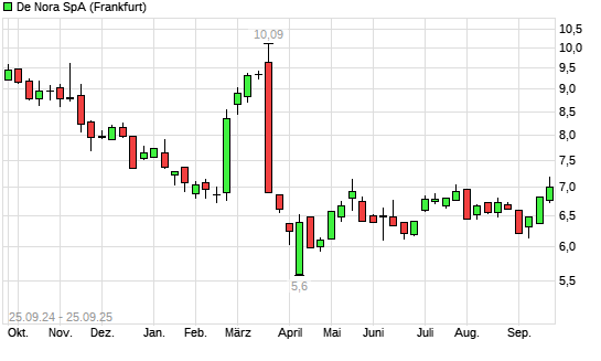 Mit dem Anstieg auf 7,18 EUR hat die Industrie De Nora-Aktie (ISIN IT0005186371) am 24.09.2025 ein neues 6-Monats-Hoch erreicht und damit den Kurs vom 14.05.2025 eingestellt.