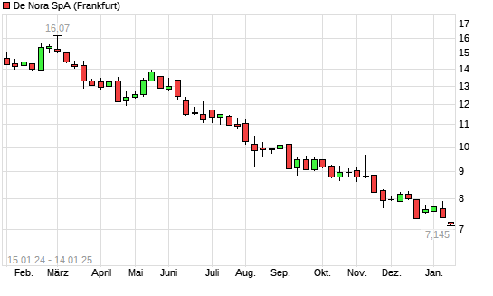Mit dem Rücksetzer auf 7,23 EUR hat die Industrie De Nora-Aktie (ISIN IT0005186371) am 13.01.2025 ein neues All-Time-Low erreicht und damit den Kurs vom 20.12.2024 eingestellt.