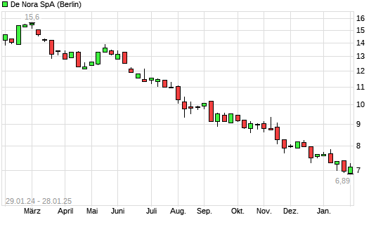 Mit dem Rücksetzer auf 7,01 EUR hat die Industrie De Nora-Aktie (ISIN IT0005186371) am 27.01.2025 ein neues All-Time-Low erreicht und damit den Kurs vom 15.01.2025 eingestellt.