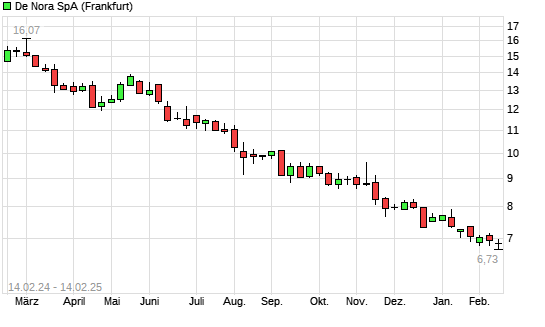 Mit dem Rücksetzer auf 6,73 EUR hat die Industrie De Nora-Aktie (ISIN IT0005186371) am 13.02.2025 ein neues All-Time-Low erreicht und damit den Kurs vom 12.02.2025 eingestellt.