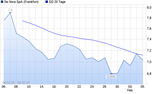 Mit dem Anstieg auf 7,15 EUR hat die Industrie De Nora-Aktie am 04.02.2025 die 20-Tage-Linie nach oben gekreuzt.