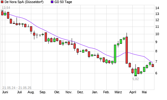 Mit dem Anstieg auf 6,81 EUR hat die Industrie De Nora-Aktie am 20.05.2025 die 50-Tage-Linie nach oben gekreuzt.