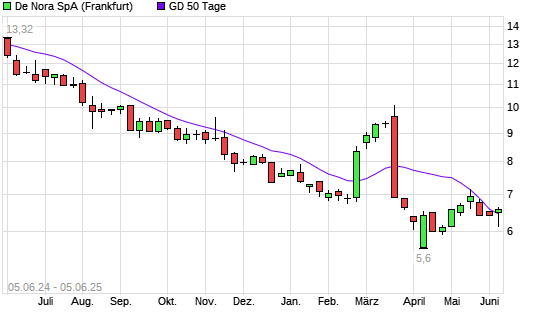 Mit dem Anstieg auf 6,56 EUR hat die Industrie De Nora-Aktie am 04.06.2025 die 50-Tage-Linie nach oben gekreuzt.