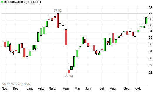 Mit dem Anstieg auf 36,32 EUR hat die Industrivarden-Aktie (ISIN SE0000190126) am 24.10.2025 ein neues 6-Monats-Hoch erreicht und damit den Kurs vom 23.10.2025 eingestellt.