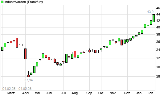 Mit dem Anstieg auf 42,76 EUR hat die Industrivarden-Aktie (ISIN SE0000190126) am 03.02.2026 ein neues All-Time-High erreicht und damit den Kurs vom 30.01.2026 eingestellt.