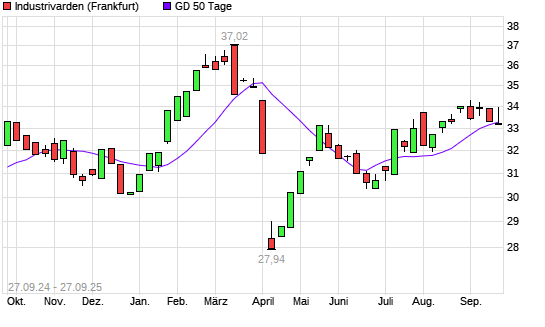 Mit dem Rücksetzer auf 33,20 EUR hat die Industrivarden-Aktie am 26.09.2025 die 50-Tage-Linie nach unten gekreuzt.