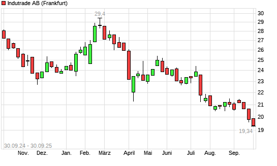 Mit dem Rücksetzer auf 19,36 EUR hat die Indutrade-Aktie (ISIN SE0001515552) am 29.09.2025 ein neues 12-Monats-Tief erreicht und damit den Kurs vom 25.09.2025 eingestellt.