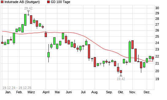 Mit dem Anstieg auf 21,52 EUR hat die Indutrade-Aktie am 18.12.2025 die 100-Tage-Linie nach oben gekreuzt.