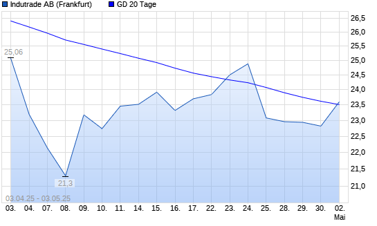 Mit dem Anstieg auf 23,60 EUR hat die Indutrade-Aktie am 02.05.2025 die 20-Tage-Linie nach oben gekreuzt.