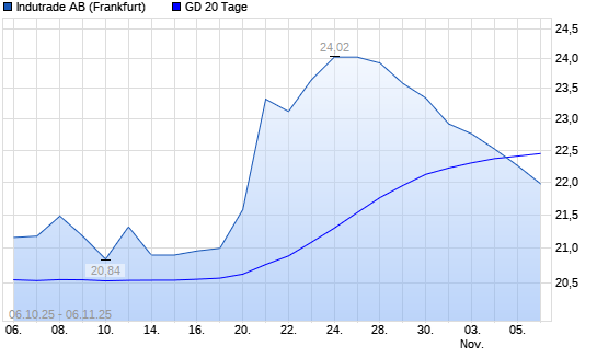 Mit dem Rücksetzer auf 22,26 EUR hat die Indutrade-Aktie am 05.11.2025 die 20-Tage-Linie nach unten gekreuzt.