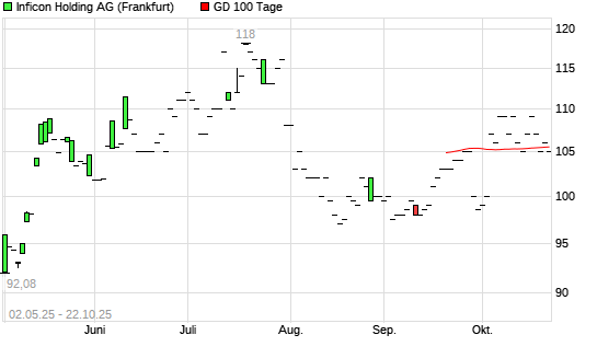 Mit dem Anstieg auf 106,00 EUR hat die Inficon Holding AG-Aktie am 21.10.2025 die 100-Tage-Linie nach oben gekreuzt.