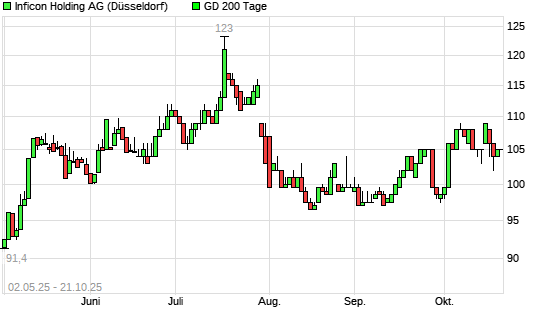 Mit dem Rücksetzer auf 105,00 EUR hat die Inficon Holding AG-Aktie am 20.10.2025 die 200-Tage-Linie nach unten gekreuzt.