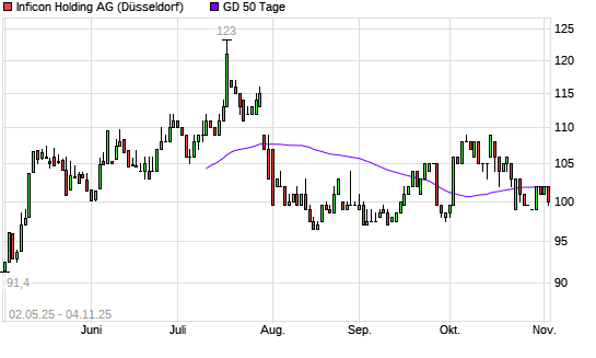 Mit dem Rücksetzer auf 102,00 EUR hat die Inficon Holding AG-Aktie am 03.11.2025 die 50-Tage-Linie nach unten gekreuzt.