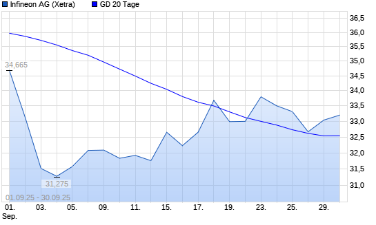 Mit dem Anstieg auf 33,10 EUR hat die Infineon-Aktie am 29.09.2025 die 20-Tage-Linie nach oben gekreuzt.