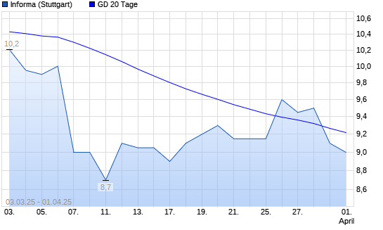 Mit dem Rücksetzer auf 9,40 EUR hat die Informa-Aktie am 31.03.2025 die 20-Tage-Linie nach unten gekreuzt.