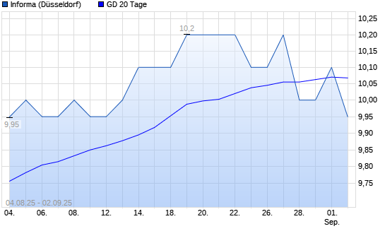 Mit dem Rücksetzer auf 10,10 EUR hat die Informa-Aktie am 01.09.2025 die 20-Tage-Linie nach unten gekreuzt.Die Informa-Aktie befindet sich seit dem 24.07.2025 im langfristigen Aufwärtstrend ...weiterlesen