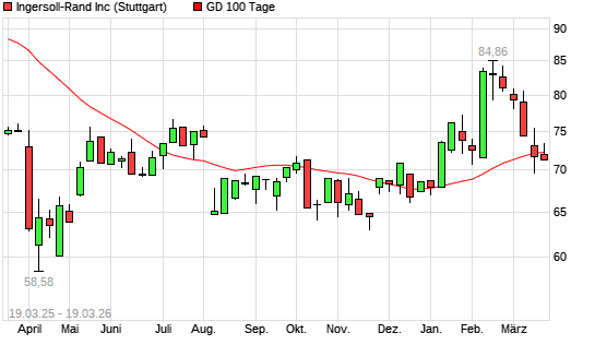 Mit dem Anstieg auf 71,82 EUR hat die Ingersoll-Rand-Aktie am 18.03.2026 die 100-Tage-Linie nach oben gekreuzt.