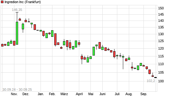 Mit dem Rücksetzer auf 102,40 EUR hat die Ingredion-Aktie (ISIN US4571871023) am 29.09.2025 ein neues 12-Monats-Tief erreicht und damit den Kurs vom 24.09.2025 eingestellt.