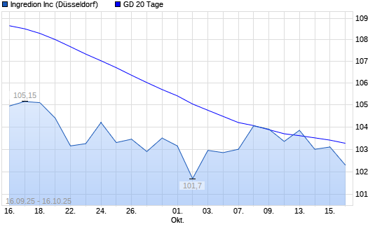 Mit dem Anstieg auf 103,25 EUR hat die Ingredion-Aktie am 15.10.2025 die 20-Tage-Linie nach oben gekreuzt.