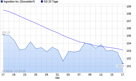 Mit dem Rücksetzer auf 102,35 EUR hat die Ingredion-Aktie am 16.10.2025 die 20-Tage-Linie nach unten gekreuzt.