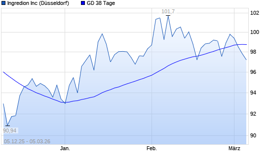 Mit dem Rücksetzer auf 98,06 EUR hat die Ingredion-Aktie am 04.03.2026 die 38-Tage-Linie nach unten gekreuzt.