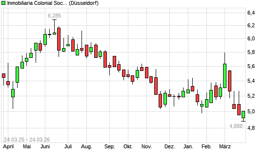 Mit dem Rücksetzer auf 4,92 EUR hat die Inmobiliaria Colonial-Aktie (ISIN ES0139140174) am 23.03.2026 ein neues 12-Monats-Tief erreicht und damit den Kurs vom 22.01.2026 eingestellt.