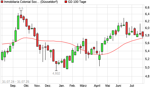 Mit dem Rücksetzer auf 5,73 EUR hat die Inmobiliaria Colonial-Aktie am 30.07.2025 die 100-Tage-Linie nach unten gekreuzt.