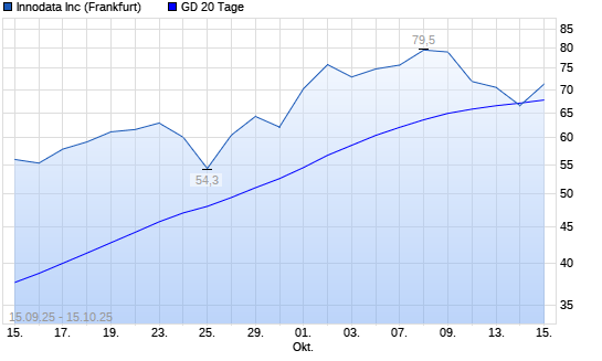 Mit dem Rücksetzer auf 66,50 EUR hat die Innodata-Aktie am 14.10.2025 die 20-Tage-Linie nach unten gekreuzt.