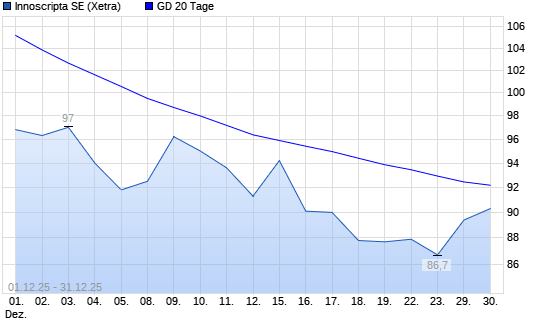 Mit dem Anstieg auf 91,50 EUR hat die Innoscripta-Aktie am 30.12.2025 die 20-Tage-Linie nach oben gekreuzt.