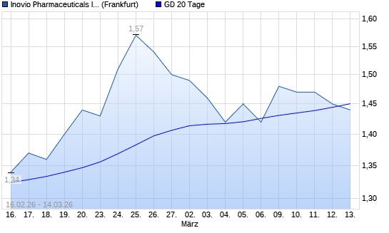 Mit dem Rücksetzer auf 1,44 EUR hat die Inovio Pharmaceuticals-Aktie am 13.03.2026 die 20-Tage-Linie nach unten gekreuzt.