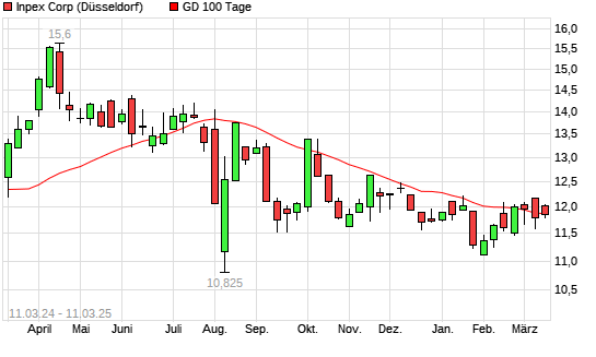 Mit dem Anstieg auf 11,99 EUR hat die Inpex-Aktie am 10.03.2025 die 100-Tage-Linie nach oben gekreuzt.