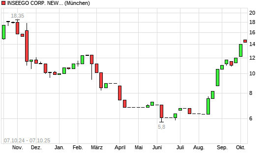 Mit dem Anstieg auf 15,00 EUR hat die Inseego-Aktie (ISIN US45782B3024) am 06.10.2025 ein neues 6-Monats-Hoch erreicht und damit den Kurs vom 03.10.2025 eingestellt.