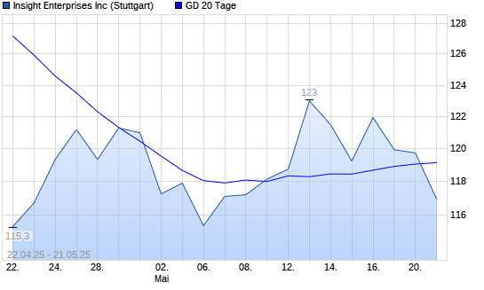 Mit dem Rücksetzer auf 118,45 EUR hat die Insight Enterprises-Aktie am 20.05.2025 die 20-Tage-Linie nach unten gekreuzt.Die Insight Enterprises-Aktie befindet sich seit dem 31.10.2024 im ...weiterlesen