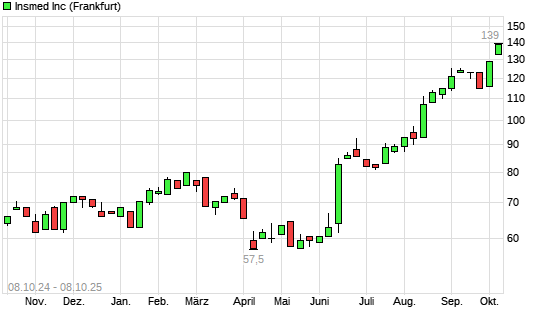 Mit dem Anstieg auf 134,00 EUR hat die Insmed-Aktie (ISIN US4576693075) am 07.10.2025 ein neues All-Time-High erreicht und damit den Kurs vom 06.10.2025 eingestellt.