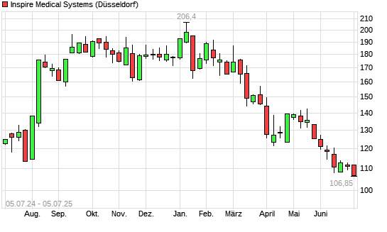 Mit dem Rücksetzer auf 107,25 EUR hat die Inspire Medical Systems-Aktie (ISIN US4577301090) am 04.07.2025 ein neues 3-Jahres-Tief erreicht und damit den Kurs vom 27.06.2025 eingestellt.