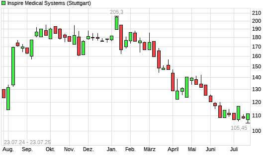 Mit dem Rücksetzer auf 106,20 EUR hat die Inspire Medical Systems-Aktie (ISIN US4577301090) am 22.07.2025 ein neues 3-Jahres-Tief erreicht und damit den Kurs vom 21.07.2025 eingestellt.