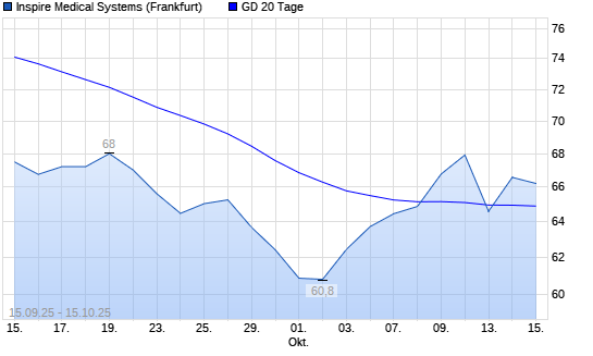 Mit dem Anstieg auf 66,58 EUR hat die Inspire Medical Systems-Aktie am 14.10.2025 die 20-Tage-Linie nach oben gekreuzt.