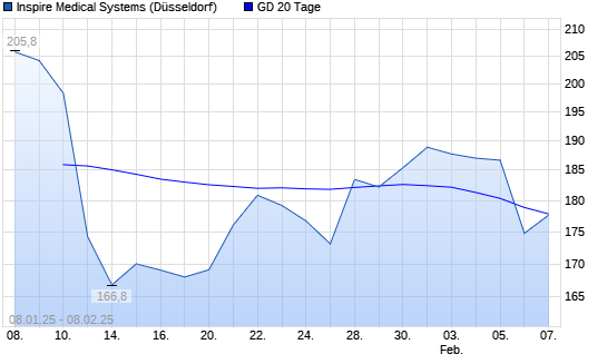 Mit dem Rücksetzer auf 174,35 EUR hat die Inspire Medical Systems-Aktie am 07.02.2025 die 20-Tage-Linie nach unten gekreuzt.