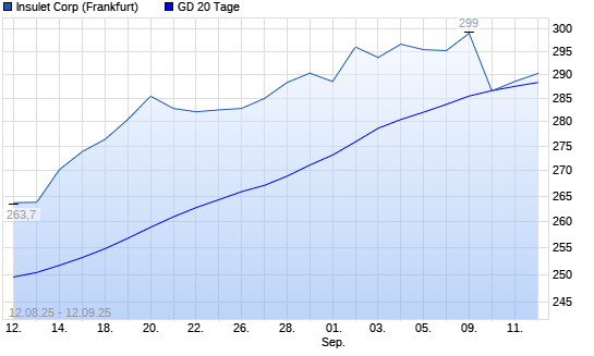 Mit dem Anstieg auf 288,50 EUR hat die Insulet Corp-Aktie am 11.09.2025 die 20-Tage-Linie nach oben gekreuzt.