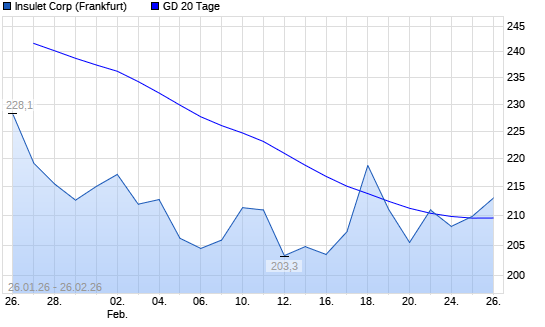 Mit dem Anstieg auf 209,90 EUR hat die Insulet Corp-Aktie am 25.02.2026 die 20-Tage-Linie nach oben gekreuzt.