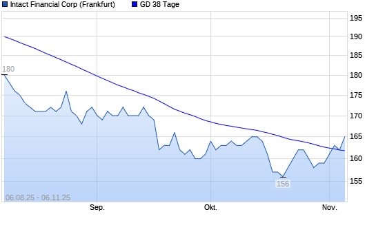 Mit dem Anstieg auf 163,00 EUR hat die Intact Financial-Aktie am 05.11.2025 die 38-Tage-Linie nach oben gekreuzt.
