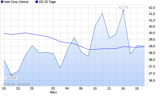 Mit dem Anstieg auf 39,00 EUR hat die Intel-Aktie am 18.03.2026 die 20-Tage-Linie nach oben gekreuzt.