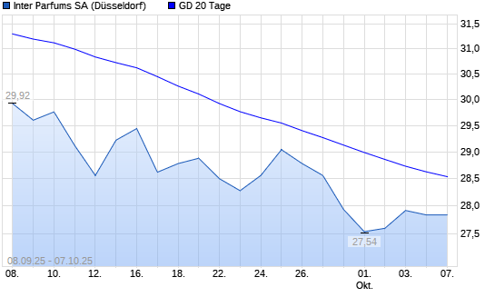 Mit dem Anstieg auf 28,78 EUR hat die Inter Parfums-Aktie am 06.10.2025 die 20-Tage-Linie nach oben gekreuzt.
