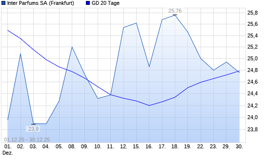 Mit dem Anstieg auf 24,94 EUR hat die Inter Parfums-Aktie am 29.12.2025 die 20-Tage-Linie nach oben gekreuzt.