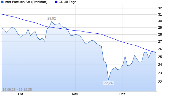 Mit dem Anstieg auf 25,76 EUR hat die Inter Parfums-Aktie am 18.12.2025 die 38-Tage-Linie nach oben gekreuzt.