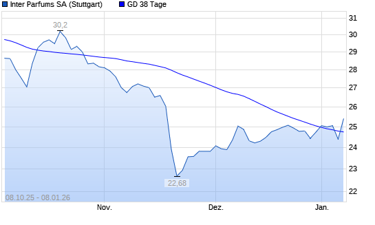Mit dem Anstieg auf 24,68 EUR hat die Inter Parfums-Aktie am 07.01.2026 die 38-Tage-Linie nach oben gekreuzt.
